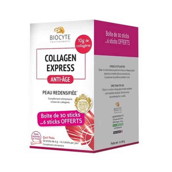 BIOCYTE COLLAGEN EXPRESS is a food supplement based on type I marine collagen that has an anti-aging effect. The skin becomes firmer, wrinkles are smoothed out. Collagen is the most abundant protein in our body, it is one of the most important building blocks of the skin and provides its density. From the age of 35, the production of endogenous collagen decreases, the skin deepens and wrinkles gradually appear. Providing collagen helps activate natural collagen production and fill in wrinkles. COLLAGEN EXPRESS contains 5 grams of marine collagen in one stick - a practical format that you can take with you anywhere. It is diluted in a glass of water and has a pleasant peach taste. COLLAGEN EXPRESS was chosen by consumers and awarded beauty victories for 2018-2019.