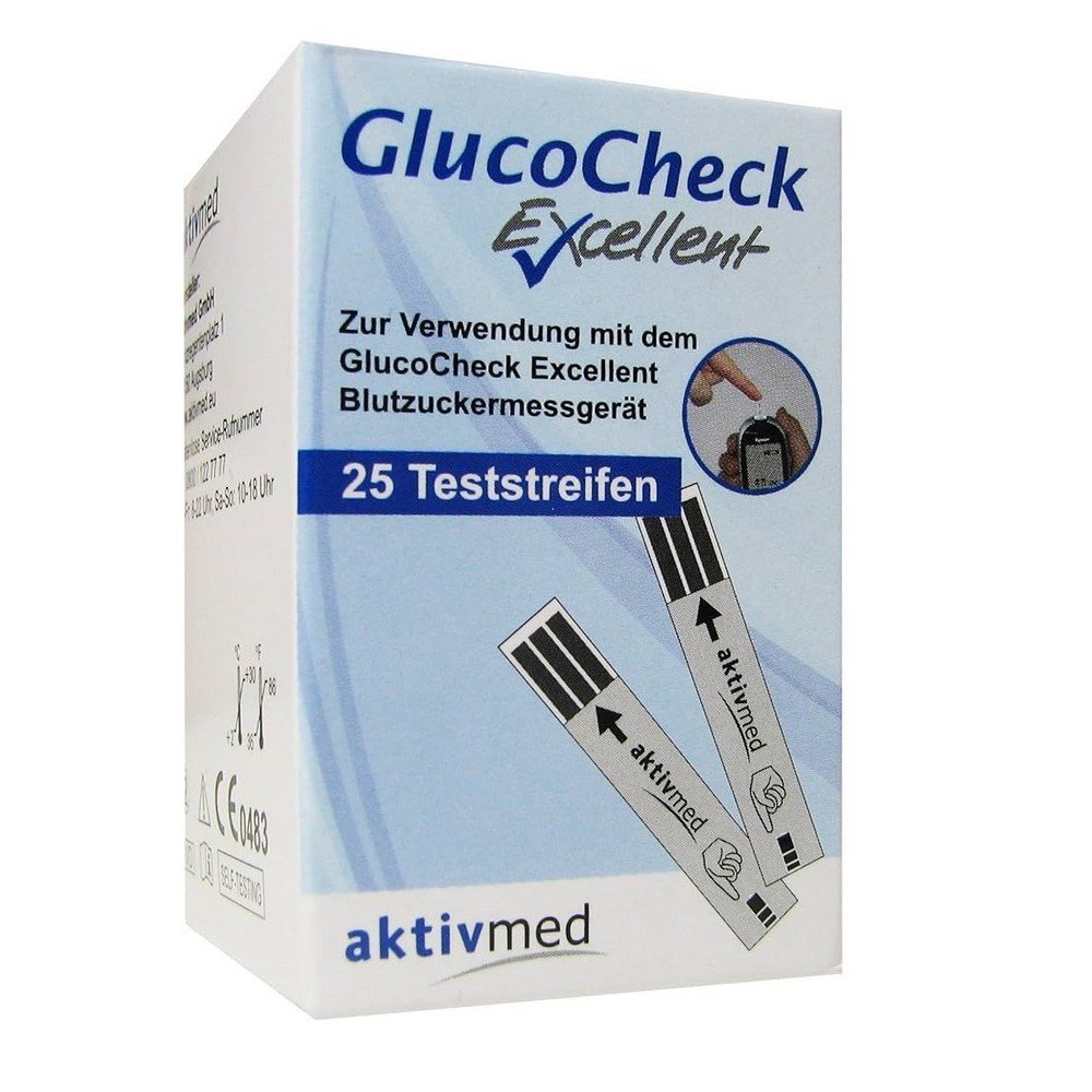 GlucoCheck Excellent Blood Sugar Test Strips can be used with the GlucoCheck Excellent Metering System and are only suitable for capillary blood glucose testing. Modern GlucoCheck Excellent test strips require only 0.5 µl of blood and provide an accurate measurement result in 5 seconds.Buy Aktivmed Gluco Check Excellent test strips (25 pieces),Aktivmed Gluco Check Excellent Teststreifen (25 Stk.)