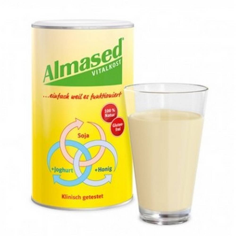 Powder for preparing drinking food as part of a weight control dietnProvides optimized metabolism with increased fat burningncontains high-quality and easily digestible proteinnprovides a long-lasting feeling of fullness: one serving of food (nutrition value about 230 kilocalories) satiates you for about four hours.nMade from high quality soy, probiotic yoghurt and honey, it is produced with particular care.nhas a neutral taste and does not contain glutennno artificial flavors, sweeteners, colors, fillers or preservativesnsuitable for diabetics and vegetariansnPreparation Instructions: Combine 300ml liquid (water, low-fat milk or soy milk), 2 teaspoons high-quality vegetable oil and the appropriate serving size* of Almased powder in a shaker, mixer or glass.n*Required serving size of Almased Powder depends on body size – please refer to manufacturer’s instructions.nStorage: Store in a cool and dry place.nImportant information: Make sure you drink enough fluids every day! The Almased diet fulfills its intended purpose only as part of a low-calorie diet. Dietary supplements are not a substitute for a balanced and varied diet and a healthy lifestyle. Doctor’s recommendations are recommended for long-term use! Allergy sufferers should seek medical help first!nContents of the jar: 500 g.Buy Almased vital food 6, 500g