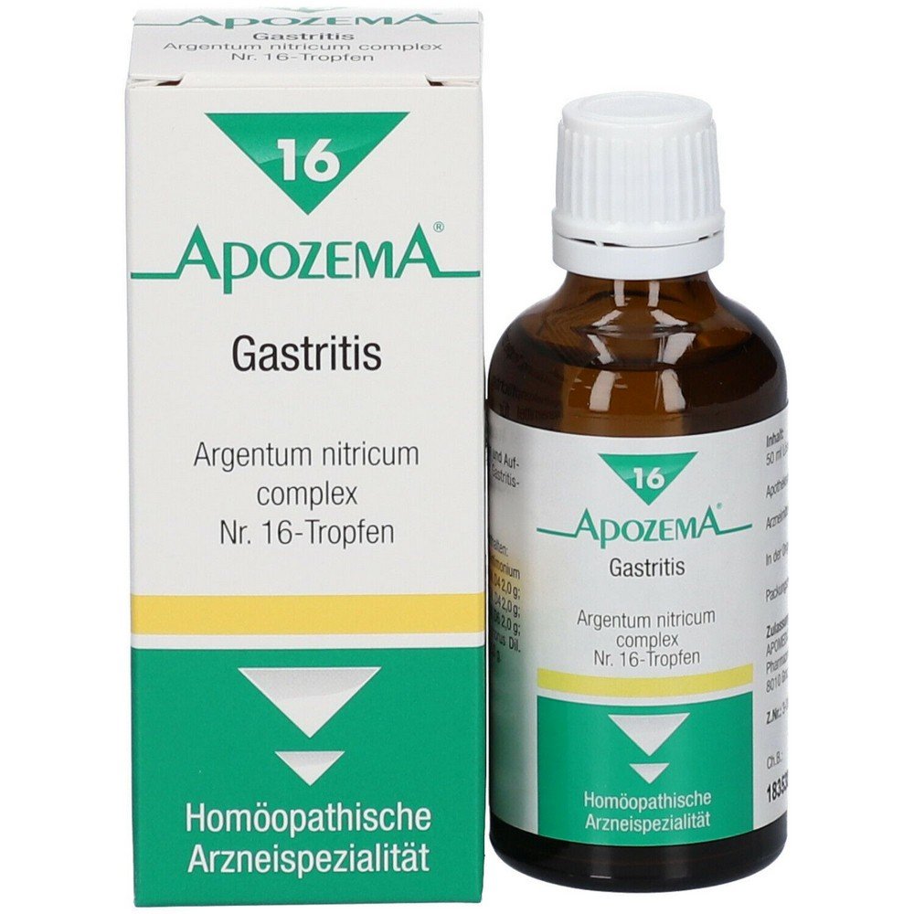 APOZEMA gastritis drops No. 16 from APOMEDICA stimulate the self-healing powers according to the homeopathic medicine picture for stomach problems, heartburn, belching and to support gastritis treatmentBuy Apozema gastritis drops No. 16, 50ml