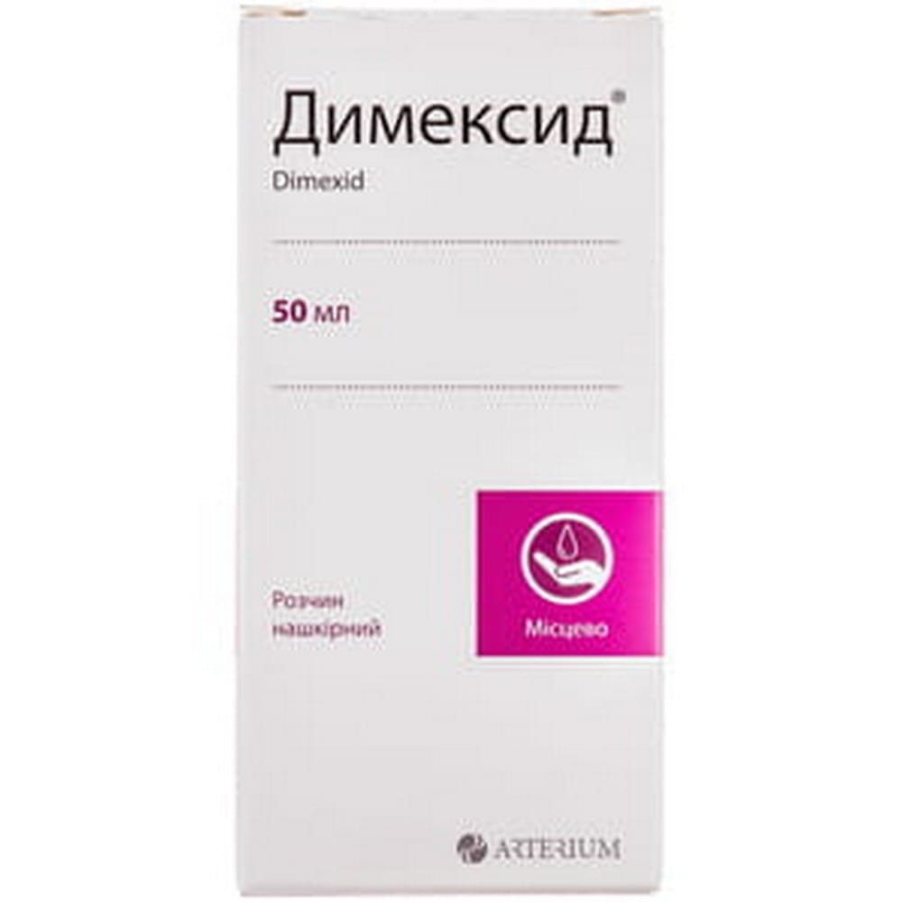 Find in pharmacy Dimexide cutaneous solution vial. 50 ml, in a pack