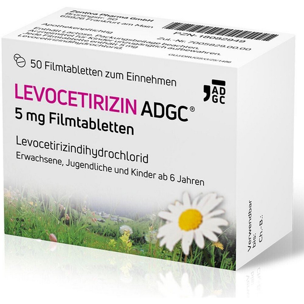 For medications: Please consult your doctor or pharmaicst about any risks and side effects.Buy Levocetirizine ADGC 5 mg film-coated tablets 50 pieces, Levocetirizin ADGC 5 mg Filmtabletten 50 Stk.
