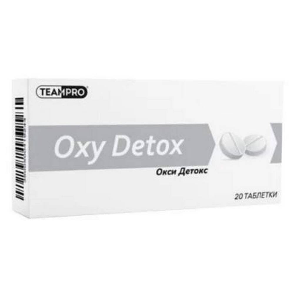 Oxy Detox from Team Pro has the active ingredient white coal, 98% of the composition of each tablet contains oxygen. It stimulates intestinal motility and the release of harmful substances from the body.