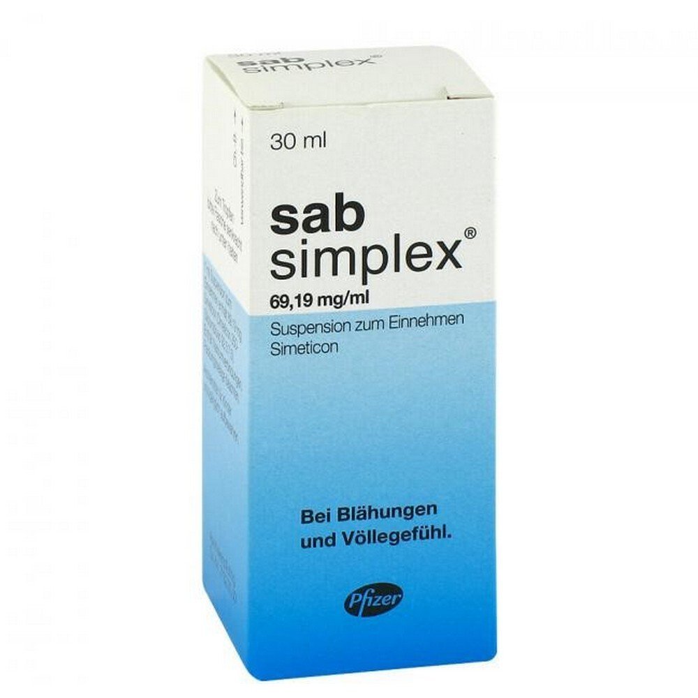 Application areasnThe drug is used forn– for the symptomatic treatment of gas-related gastrointestinal complaints, e.g. Flatulence (meteorism), bloating.n– to prepare for examinations in the abdominal area, e.g. X-rays and sonography (ultrasound examination) and for the preparation of gastroduodenoscopies (gastrointestinal reflections).n– with increased gas formation after operations.n– in the case of detergent poisoning.nnContraindications and PrecautionsnThe drug must not be takennif you are allergic (hypersensitive) to the active ingredient dimethicone or any of the other ingredients of the medication.nnSpecial care is required when taking the drugnIn the case of new and / or prolonged abdominal complaints, you should consult a doctor so that the cause of the complaints and any underlying disease that may require treatment can be identified.Buy SAB simplex oral suspension, 30 ml