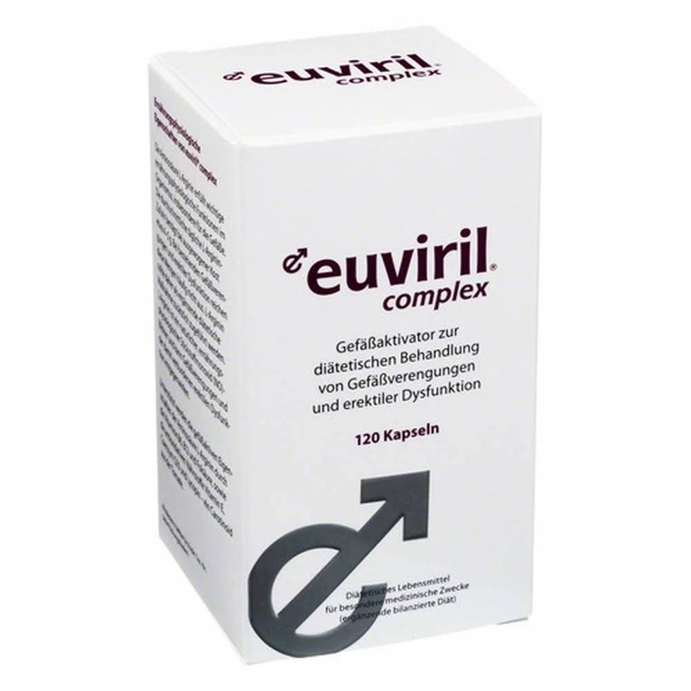 Euviril Complex Euviril Complex is a dietary food recommended for use in vasoconstriction and erectile dysfunction. In addition to the secondary plant substance lycopene and the vascular-active amino acid L-arginine, Euviril Complex also contains several antioxidant vitamins. These nutrients help improve vascular function and blood circulation. This product is easy to tolerate and can be purchased without a prescription.