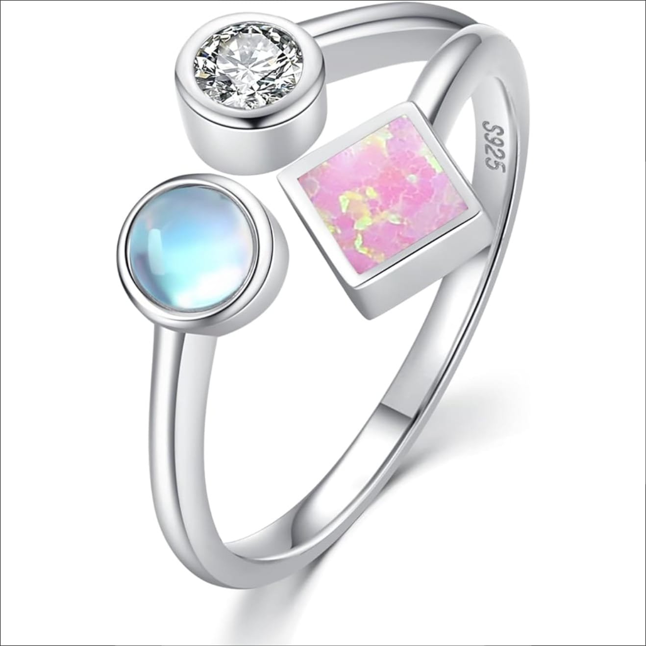 - Opal adjustable open ring: hypoallergenic 925 sterling silver: moonstone, opal, zirconia, 925 sterling silver rings, nickel-free, lead-free, cadmium-free and contains no allergies. High quality material, no fading and no breakage.